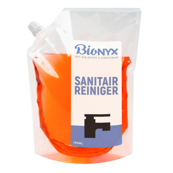 BIOnyx Refill navulverpakking Sanitair reiniger, is een handige en duurzame navulverpakking met hersluitbare schenktuit.