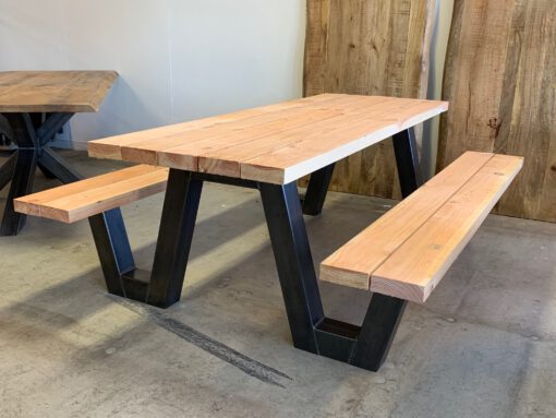 - (Hard)(Douglas)(Teak)houten, bamboe (picknick)tuintafels, tuin- straatmeubilair en ligbedden